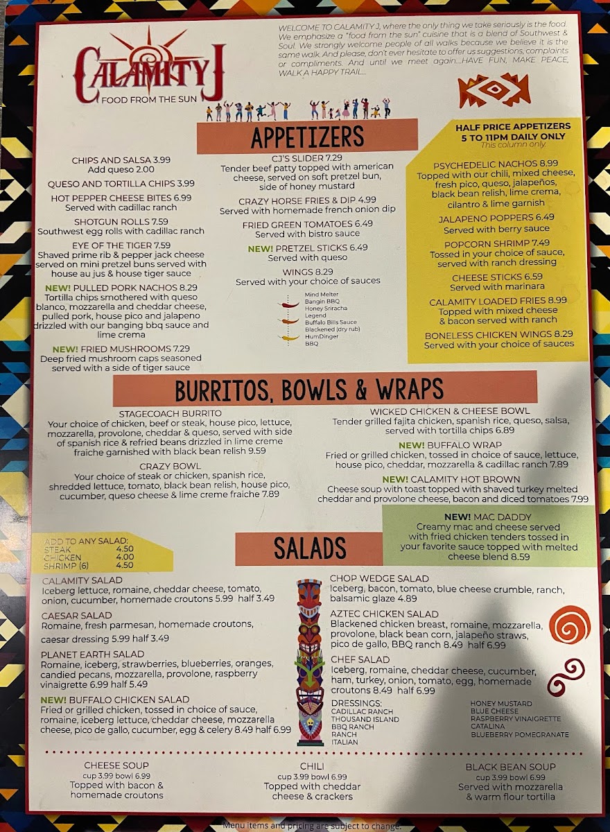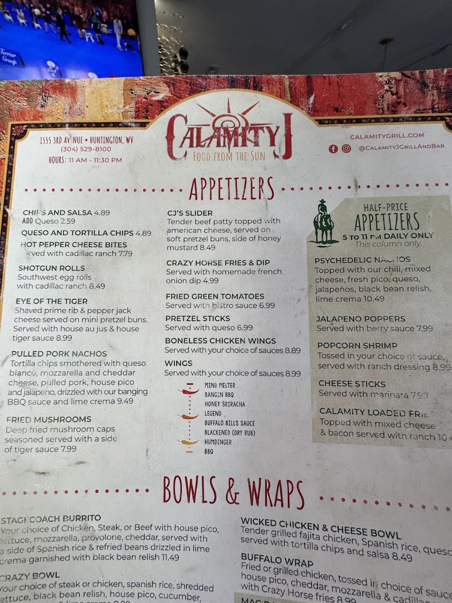Welcome to Calamity J Grill & Bar, a culinary gem located in Huntington, WV. Nestled conveniently across from Marshall University, this vibrant eatery combines a lively atmosphere with an array of delicious offerings. The menu highlights include their Extra Large Cheese Pizza, which has garnered rave reviews, and mouthwatering sides like refried beans and onion rings that complement any meal.